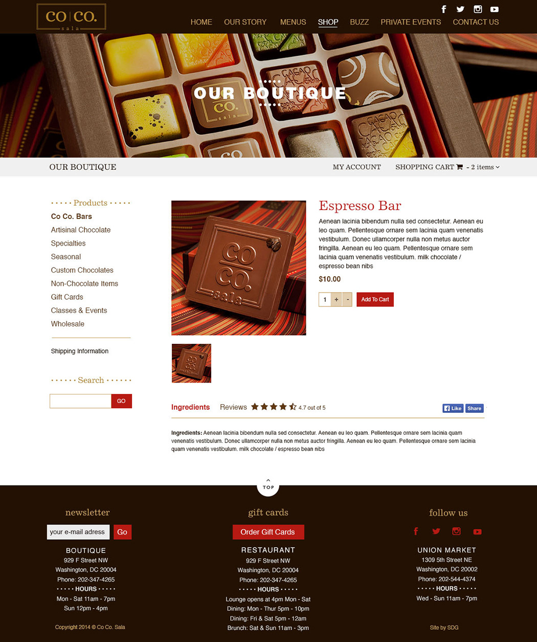 CoCo Sala Chocolate Restaurant & Boutique :: Washington, DC :: Website Design